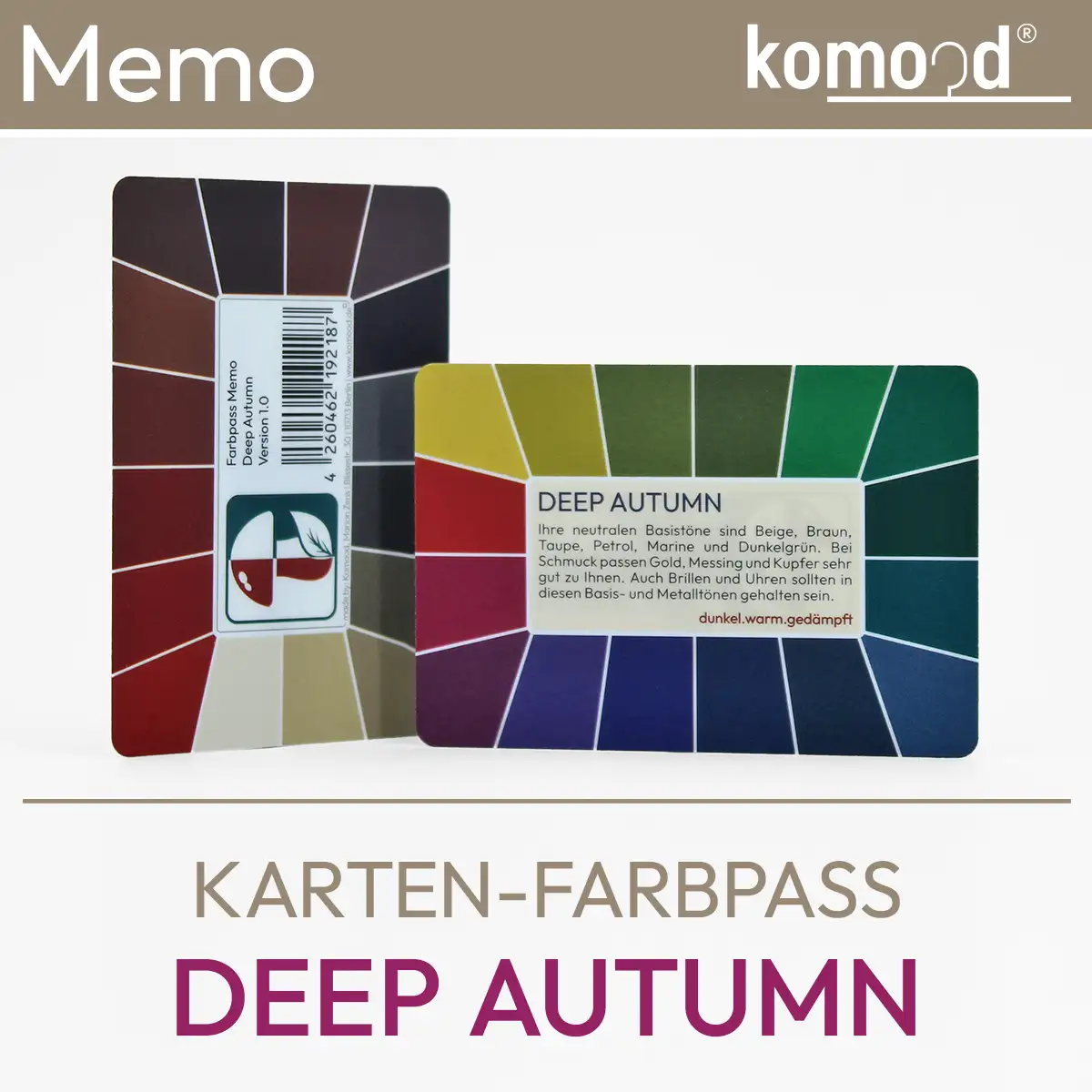 Passeport de couleurs pour le Deep Autumn - nuancier de la série Memo avec 32 champs de couleurs de la palette Deep Autumn - foncé, chaud, atténué
