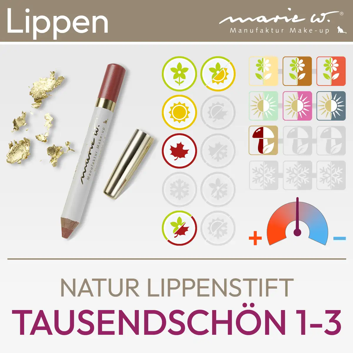 Dieser vegane, hochwertige und pflegende Lippenstift von marie w. mit Rohstoffen aus fairem Handel ist für folgende Farbtypen geeignet: